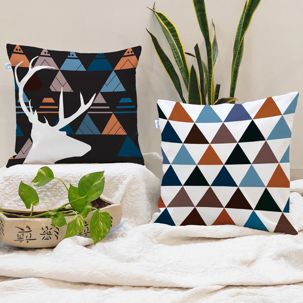 Geometrical Multi color Printed Canvas Cotton Cushion Covers, Set of 2 (24 x 24 Inches)