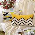 Yellow & Black Geometrical Printed Canvas Cotton Rectangular Cushion Covers, Set of 2