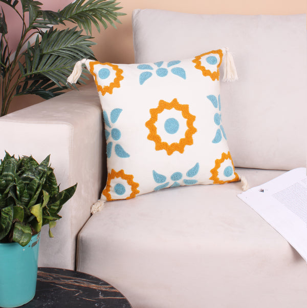 Floral Tufted Cushion Cover with Tassel 16 X 16 Inches Pack of 1