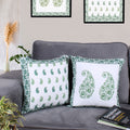 Both Side Block Print Spring Paisley Green Cushion Cover Set of 2