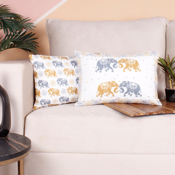 Both Side Block Print Elephant Cushion Cover Set of 2 ( 12 X 18 Inches )