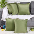 Velvet Cushion Covers Adorned With Pom Poms Set of 5, Mehndi