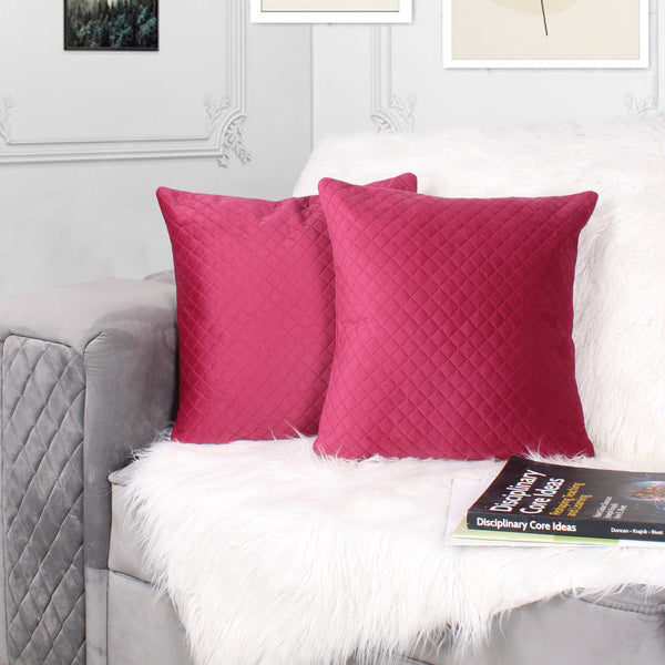 Both Side Quilted Velvet Cushion Cover (Set of 2), Maroon