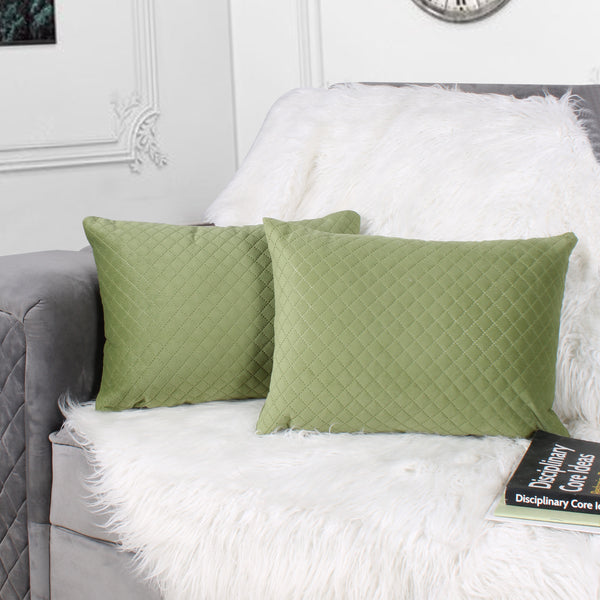 Both Side Quilted Velvet Rectangular Cushion Cover (Set of 2), Mehndi