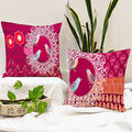 Pink Floral Bird Printed Canvas Cotton Cushion Covers, Set of 2