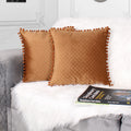 Both Side with PomPom Quilted Velvet Cushion Cover (Set of 2), Brown
