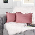 Both Side with PomPom Quilted Velvet Rectangular Cushion Cover (Set of 2), Peach
