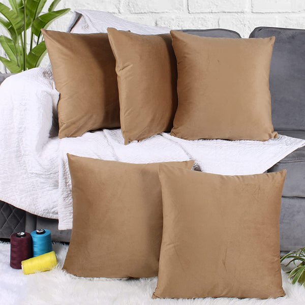 Soft Luxurious Velvet Cushion Covers Set of 5, Brown