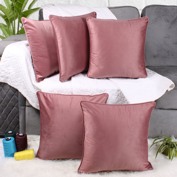 Velvet Cushion Cover With Piping - Perfect for Home Décor Set of 5, Peach