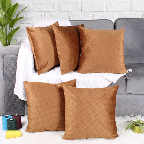Both Side Quilted Velvet Cushion Cover (Set of 5), Brown
