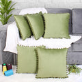 Both Side with PomPom Quilted Velvet Cushion Cover (Set of 5), Mehndi