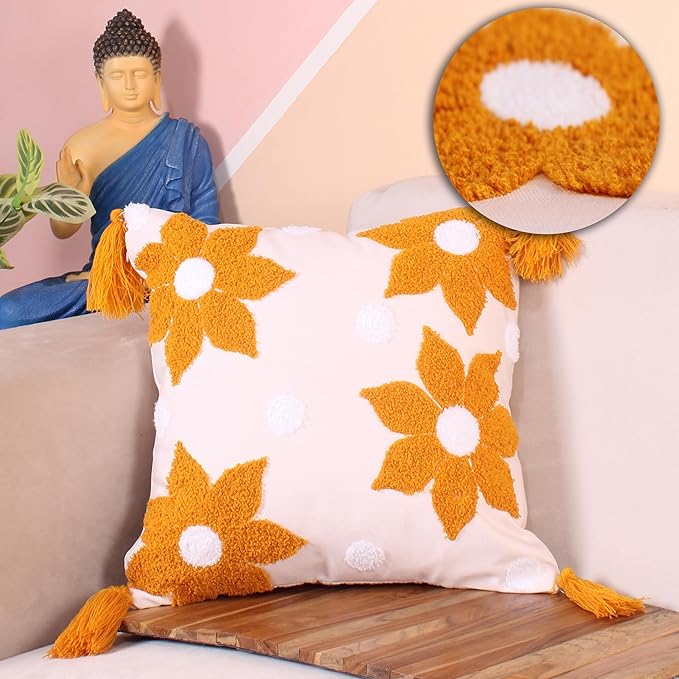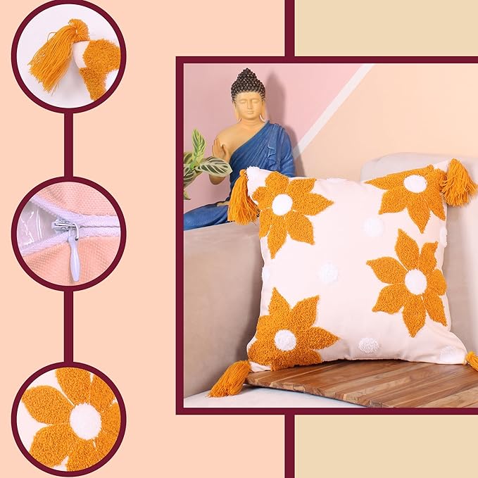 Made from high-quality fabric with durable stitching, this cushion cover is designed to last while maintaining its premium look. The black tassels at each corner add a playful and stylish finishing touch, making it a standout décor piece in any modern or boho-inspired home.