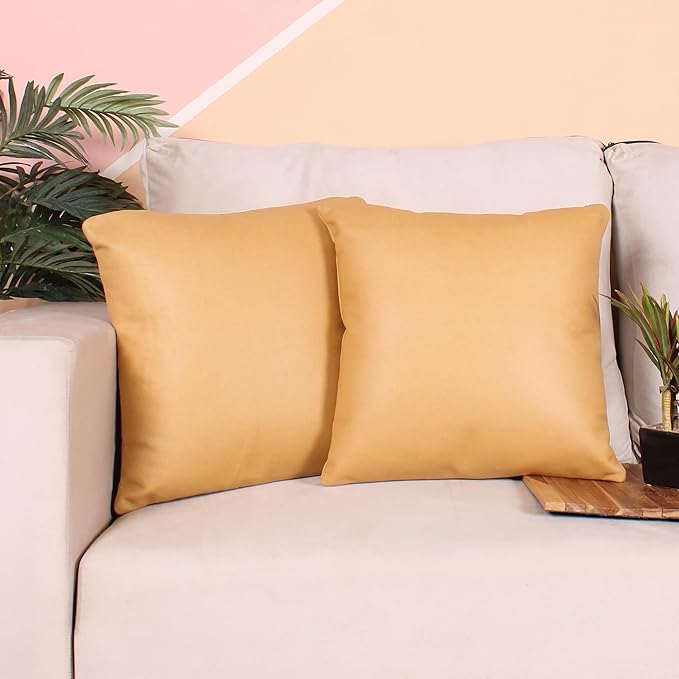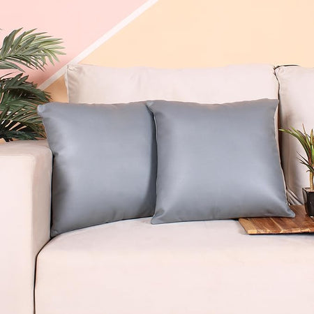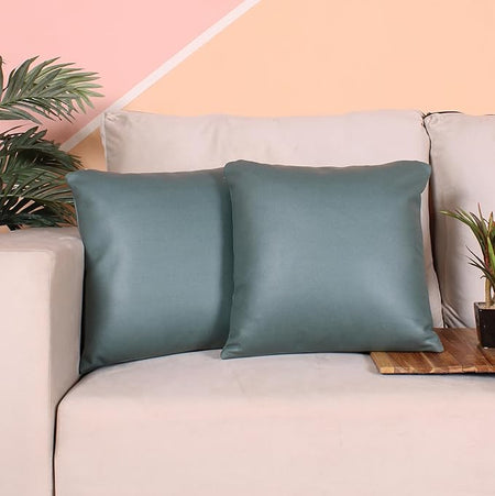 Soft Rexine Cushion Covers for Living Room Décor Set of 2 (16x16 Inches)
