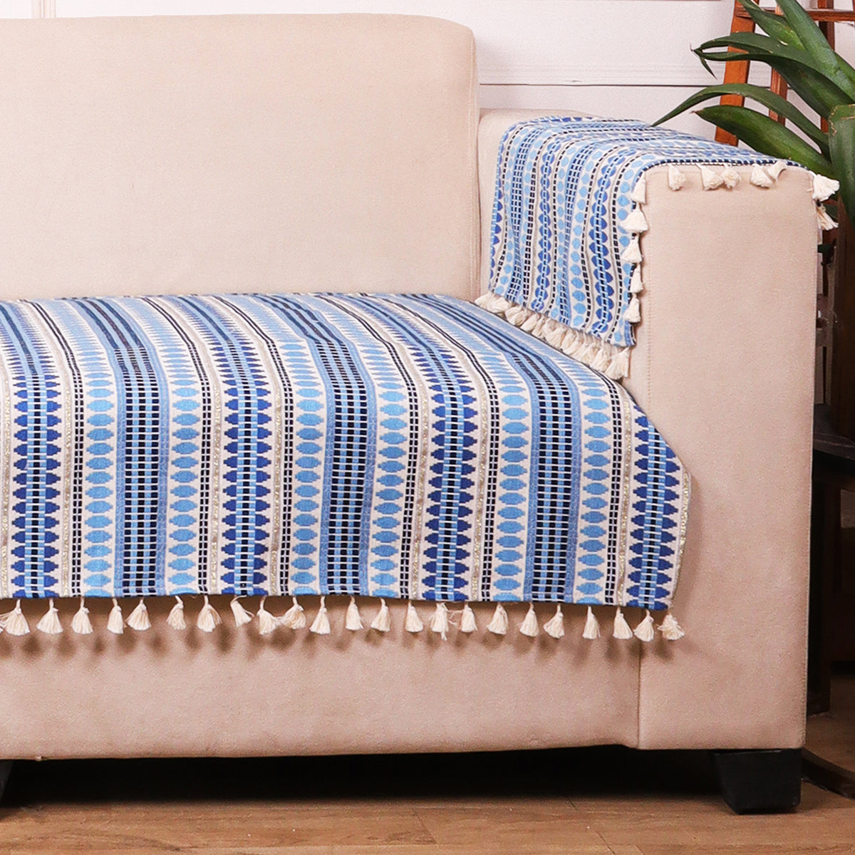 Striped Sofa Cover Featuring Green and Blue for Modern Living Room