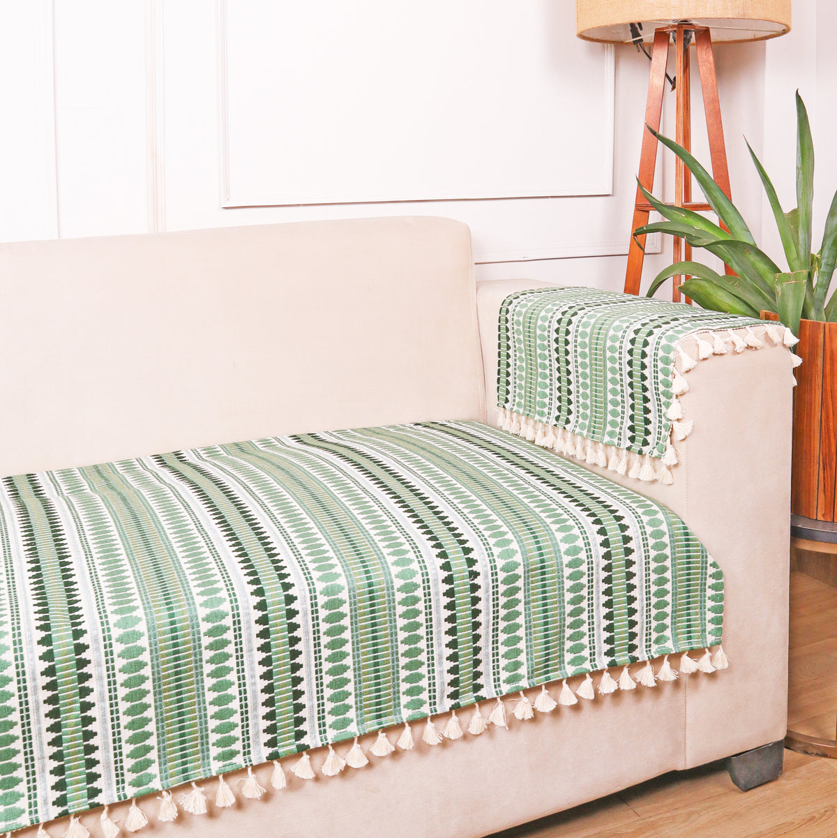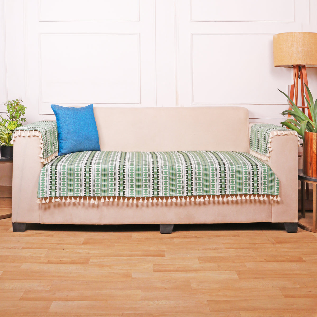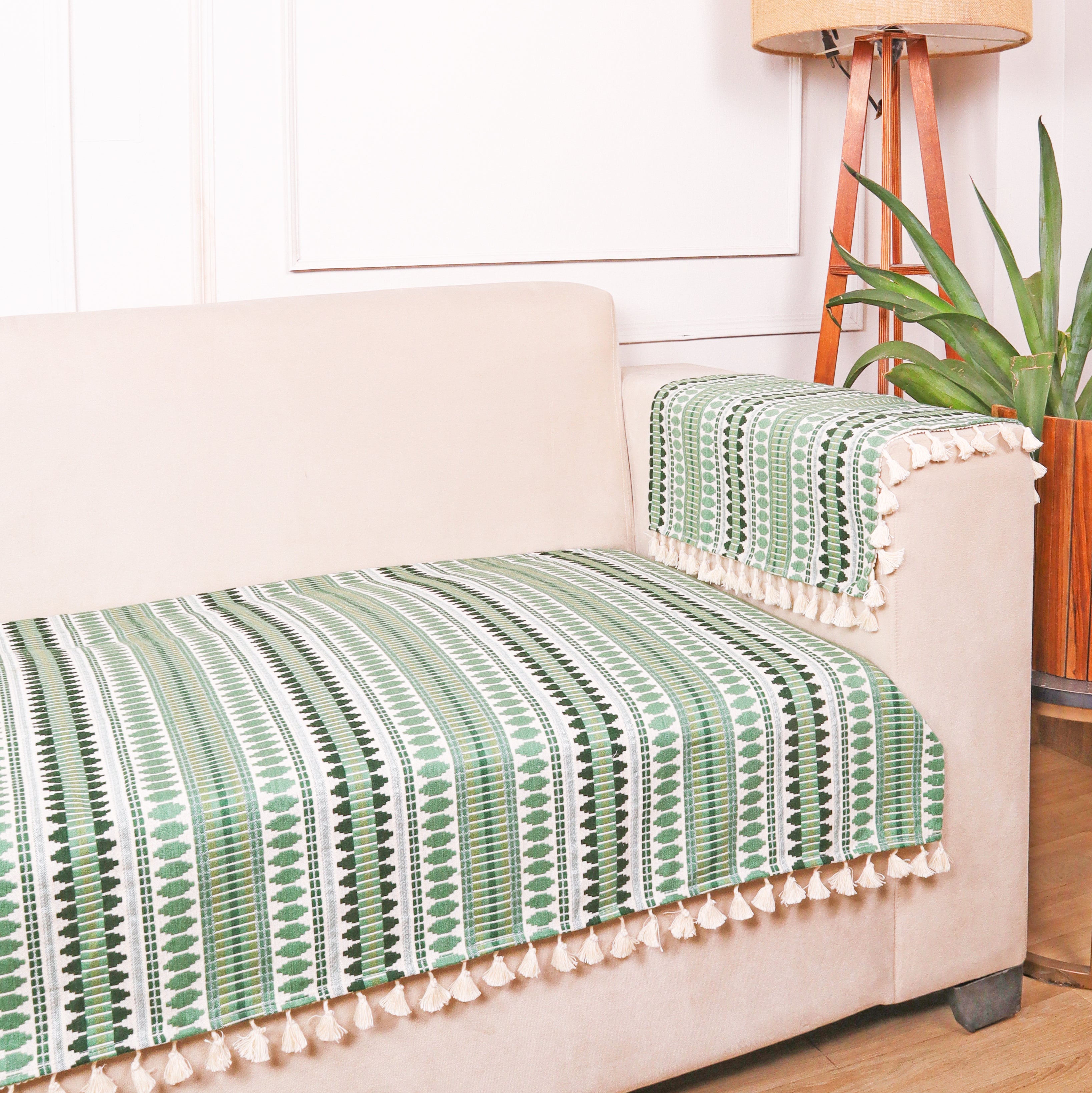 Striped Sofa Cover Featuring Green and Blue for Modern Living Room