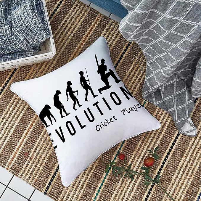 Evolution of Cricket Player Printed Cushion Cover – 16×16 Inches
