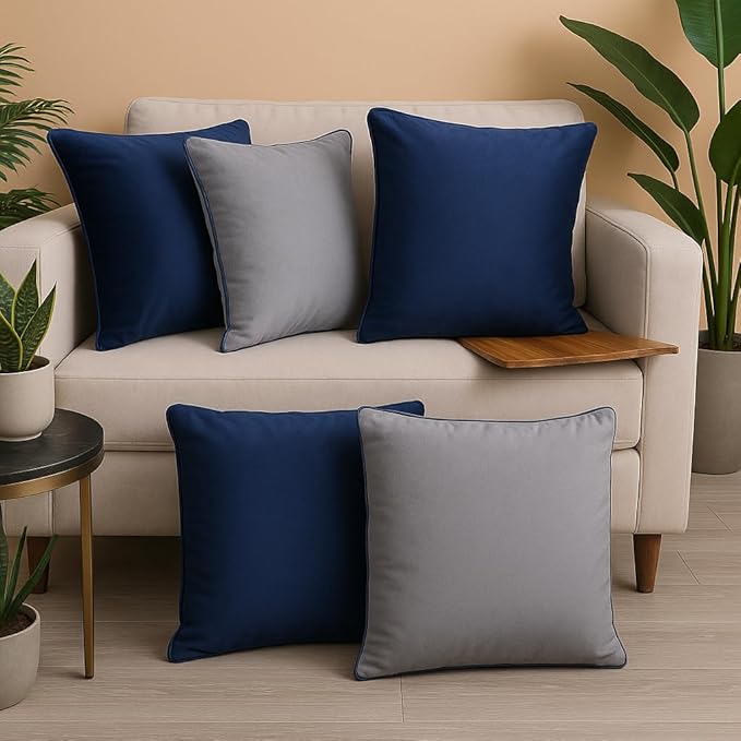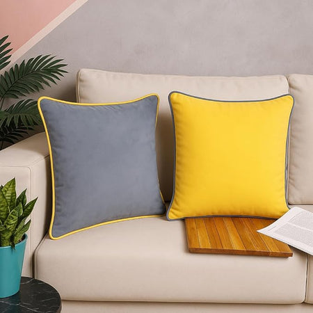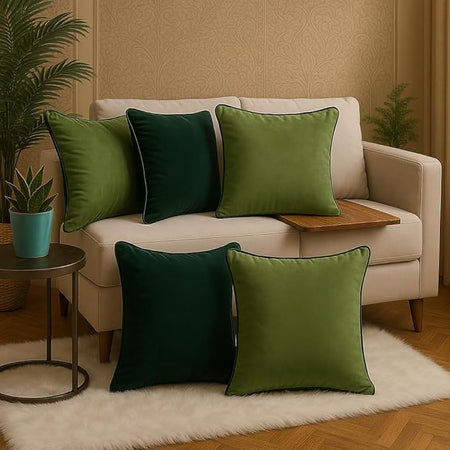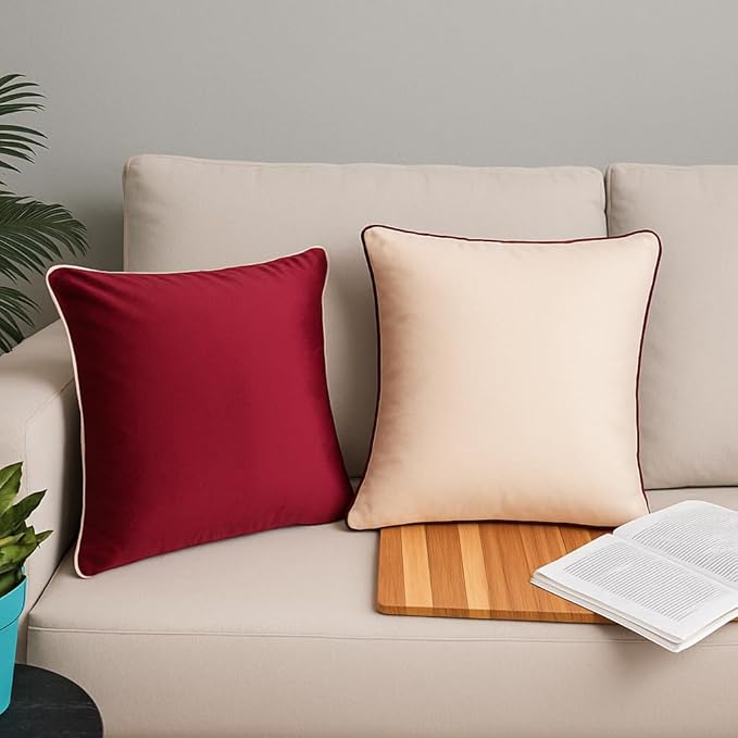 Luxury Velvet Cushion Covers with Elegant Piping – Double-Sided, Available in Sets of 2 & 5