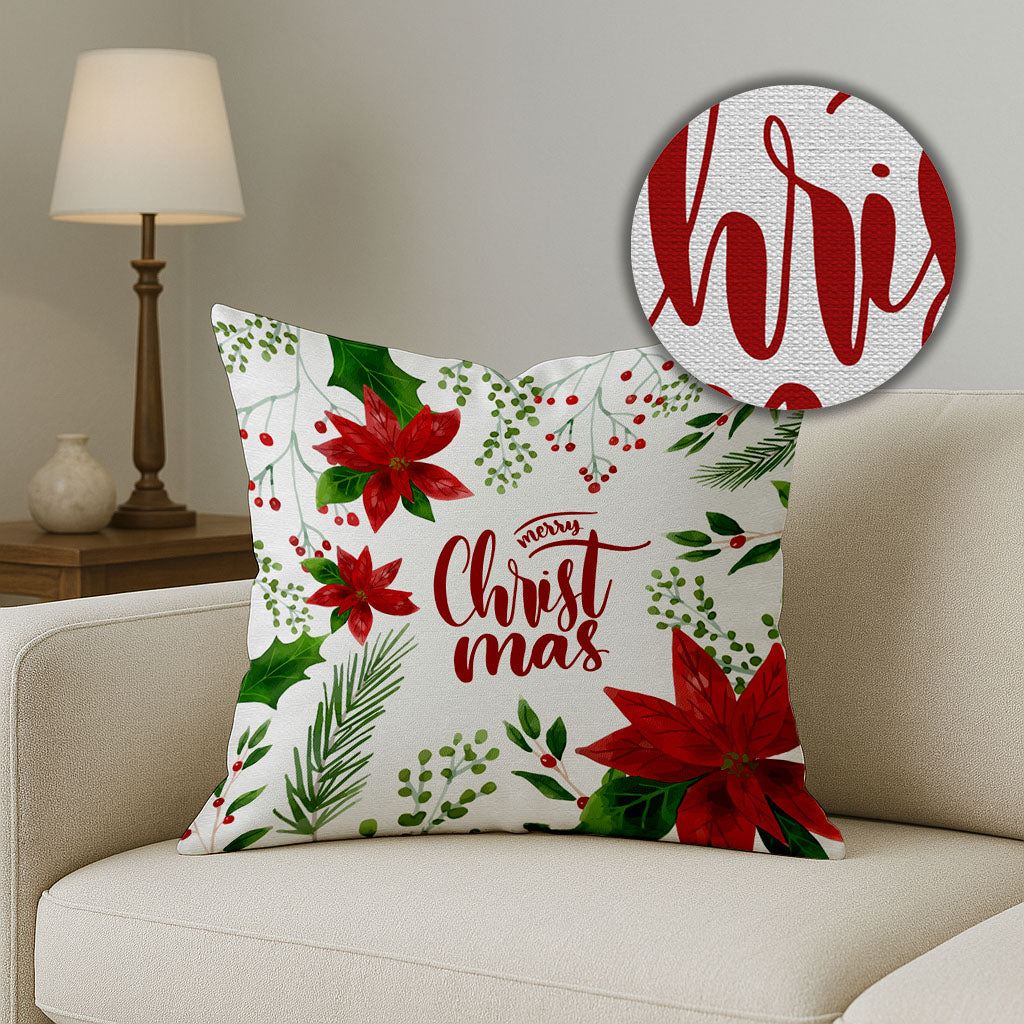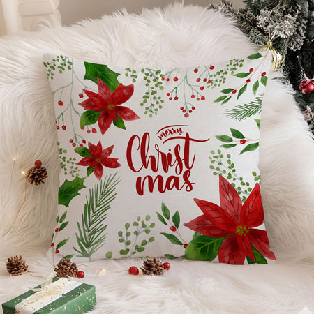 Merry Christmas Floral Cushion Cover - 16x16 Inches