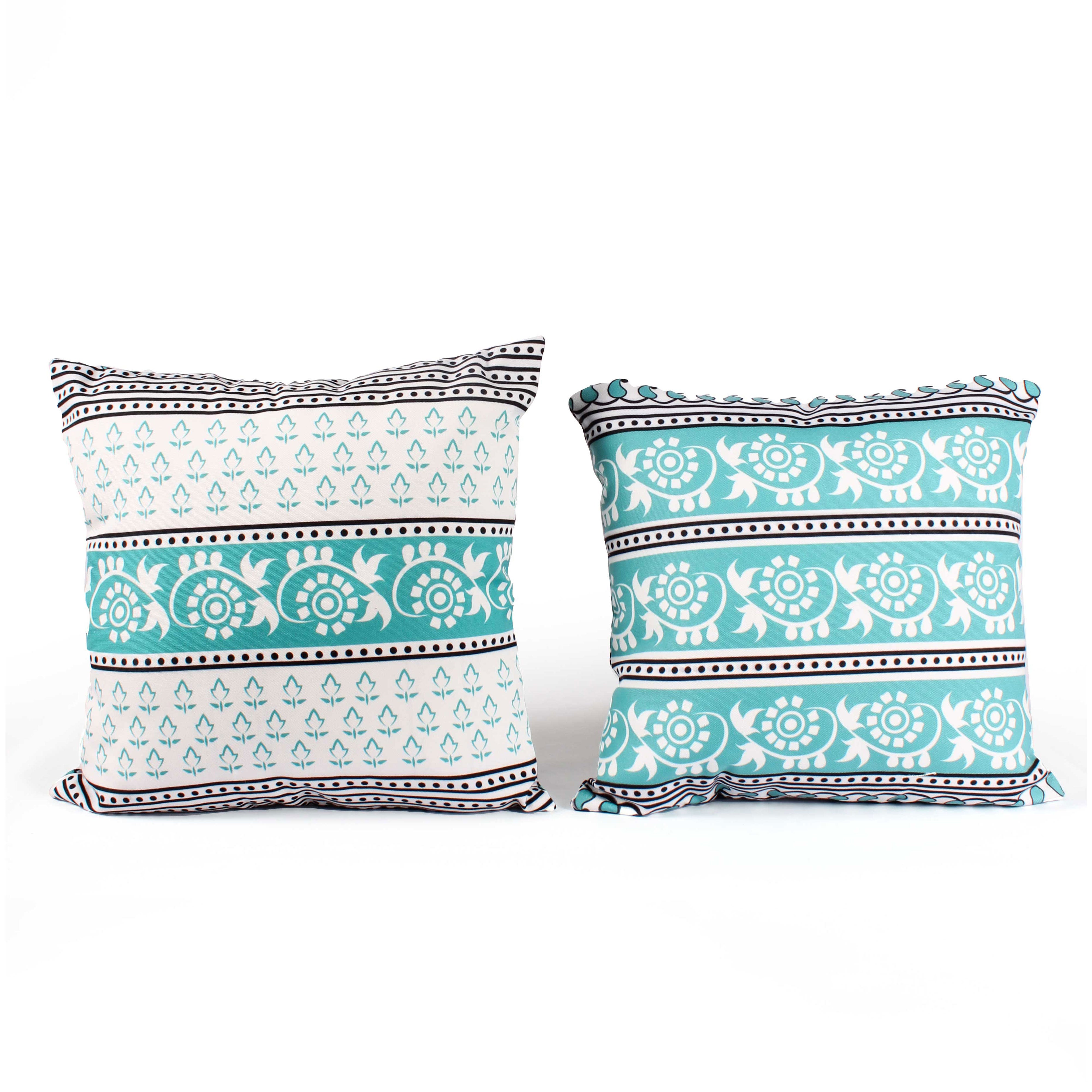 Turquoise Coastal Boho Cushion Cover Set – 18×18 Inches (Pack of 2)