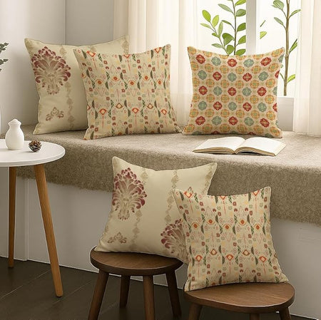 Beige Traditional Print Cushion Cover – 18×18 Inches (Pack of 5)