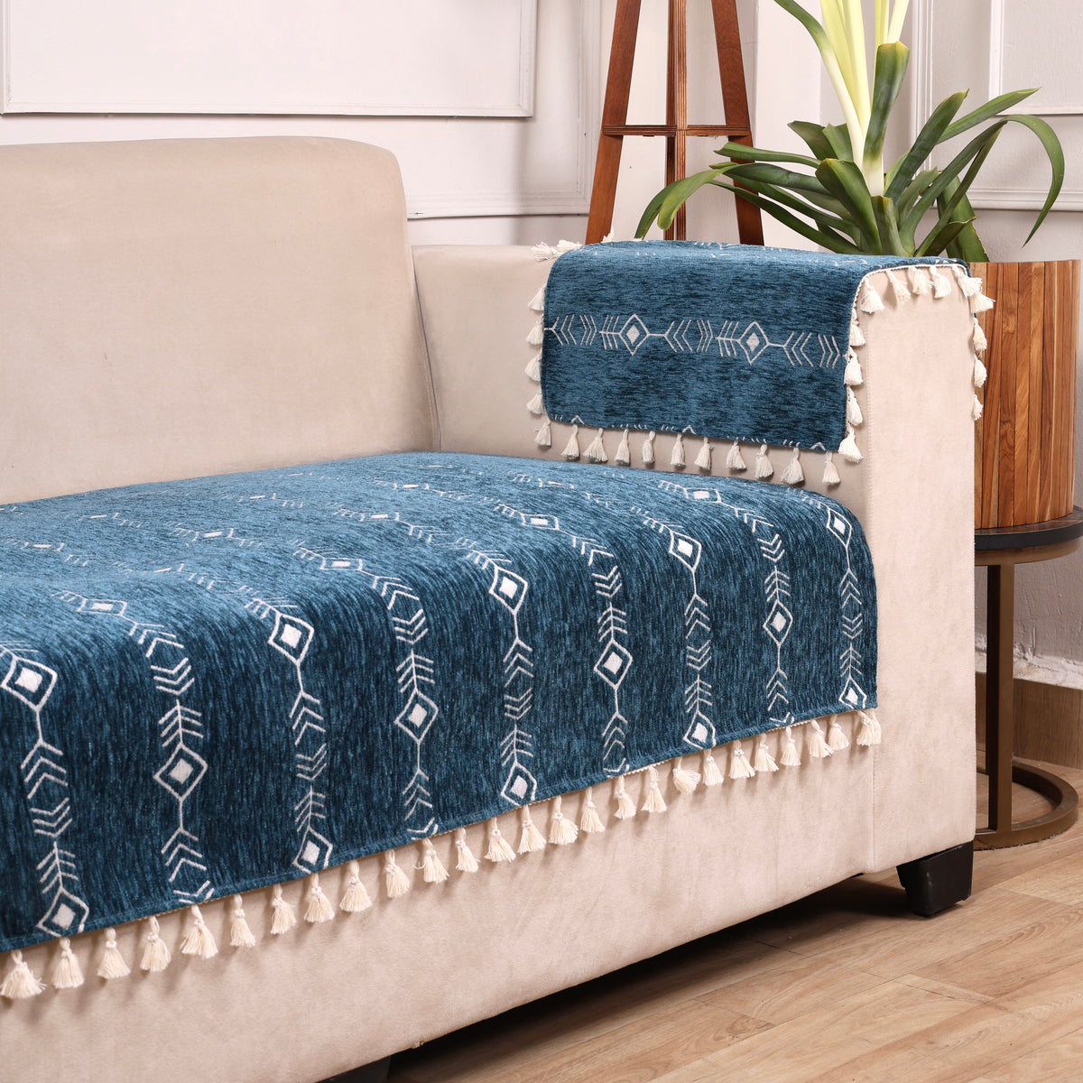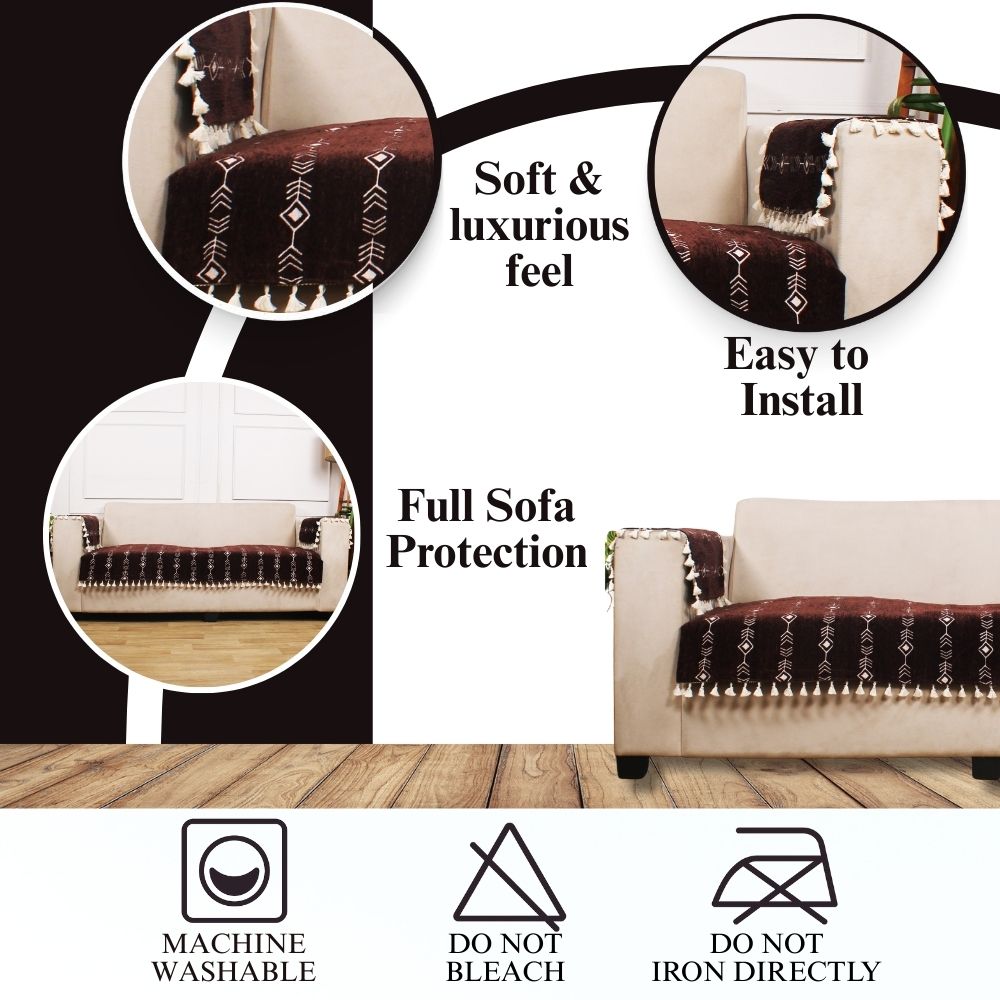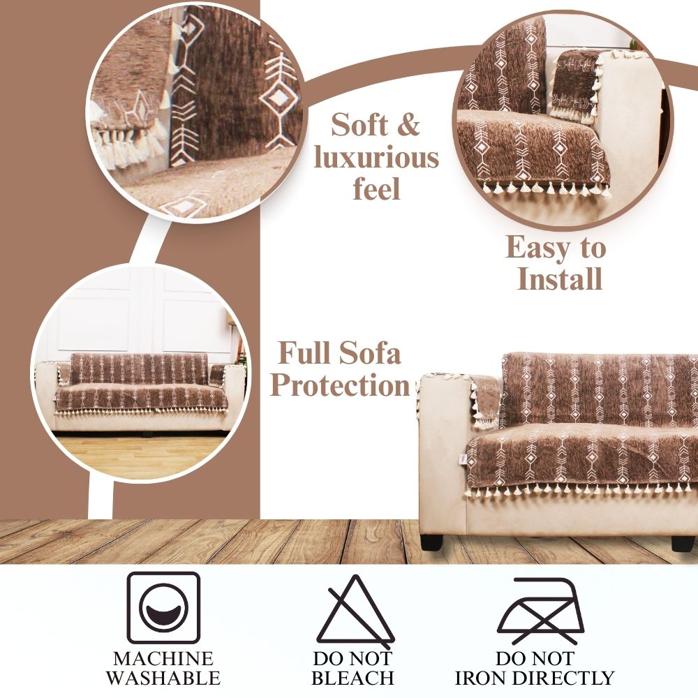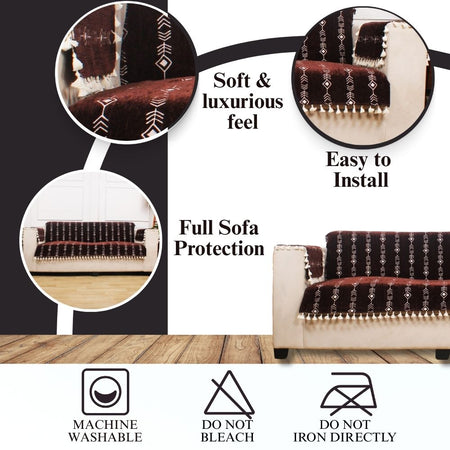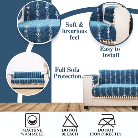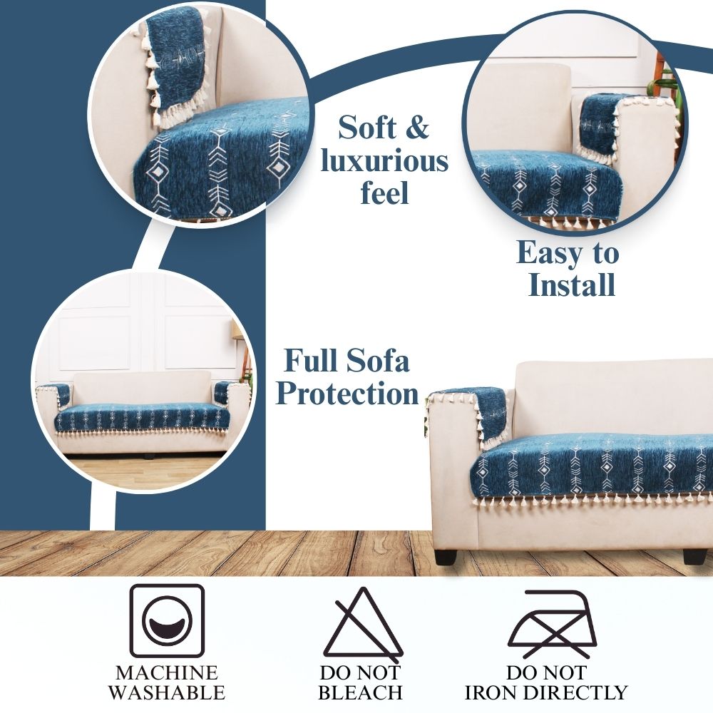 Printed Chenille Sofa Cover for 1 Seater, 2 Seater & 3 Seater with Hand Rest