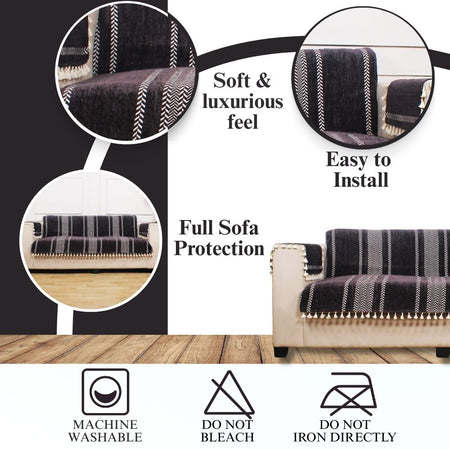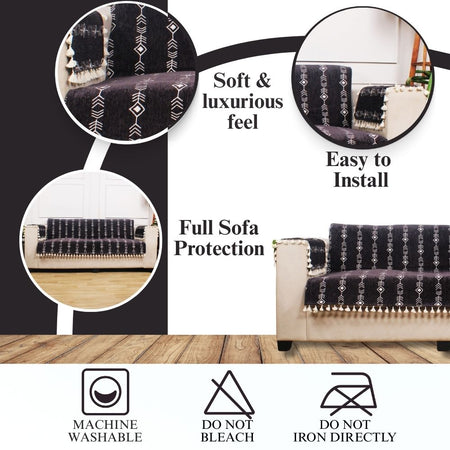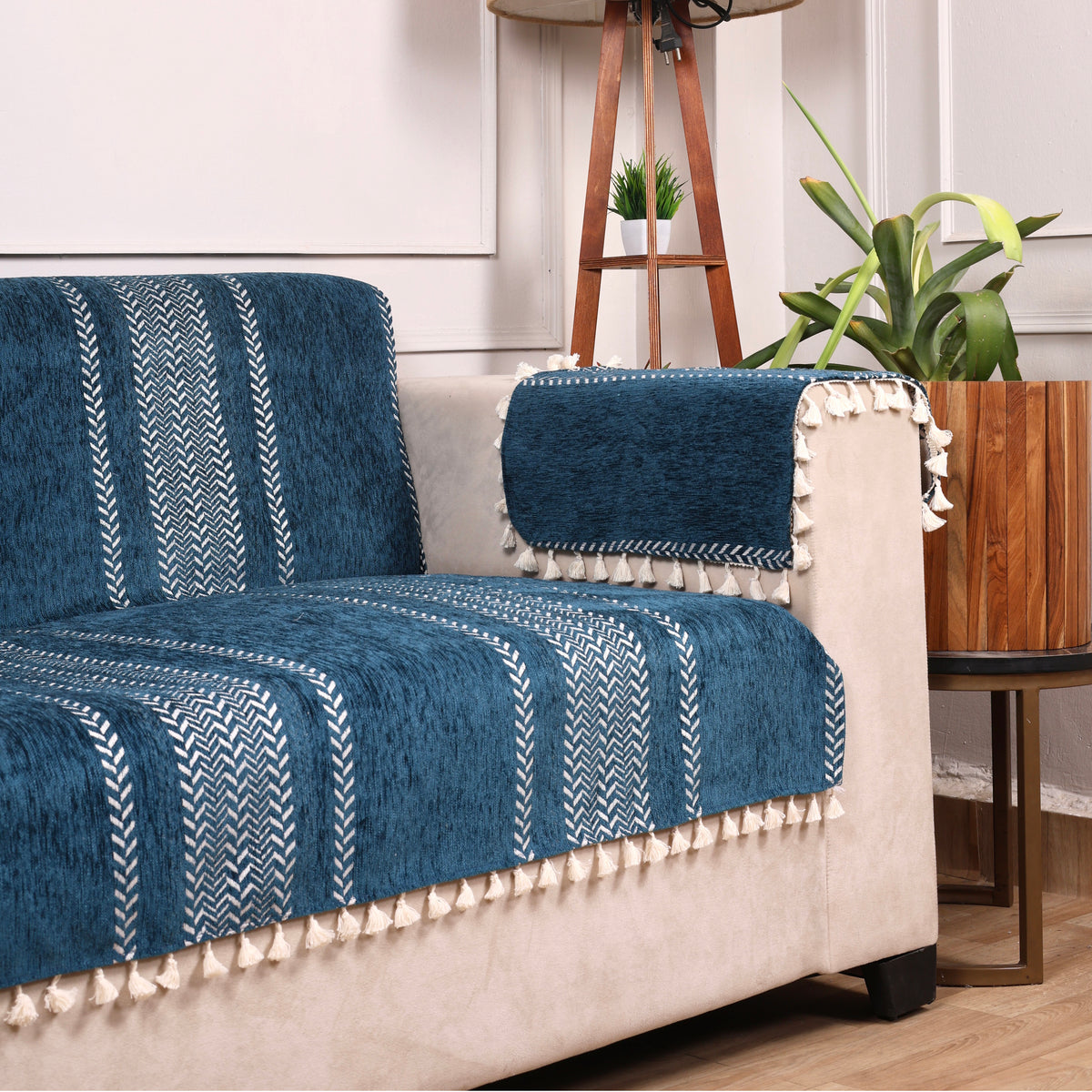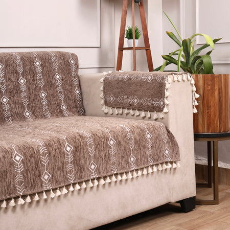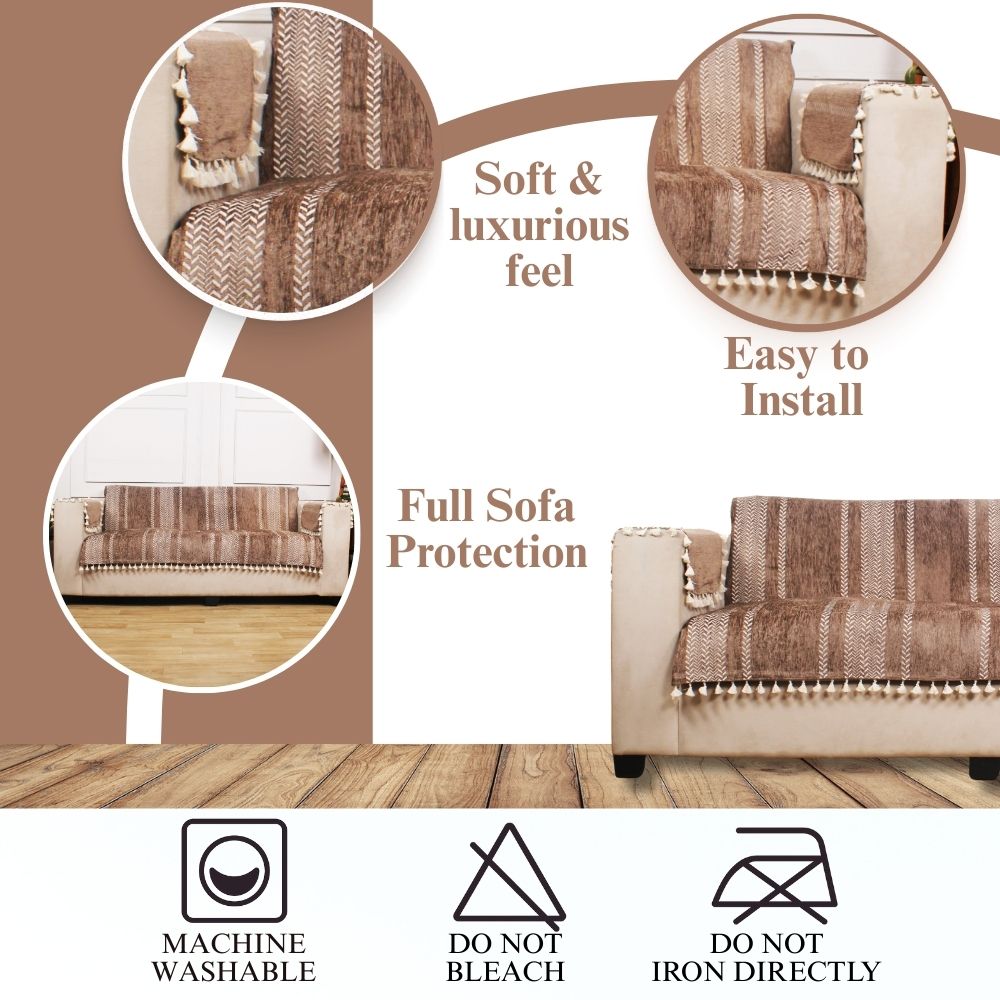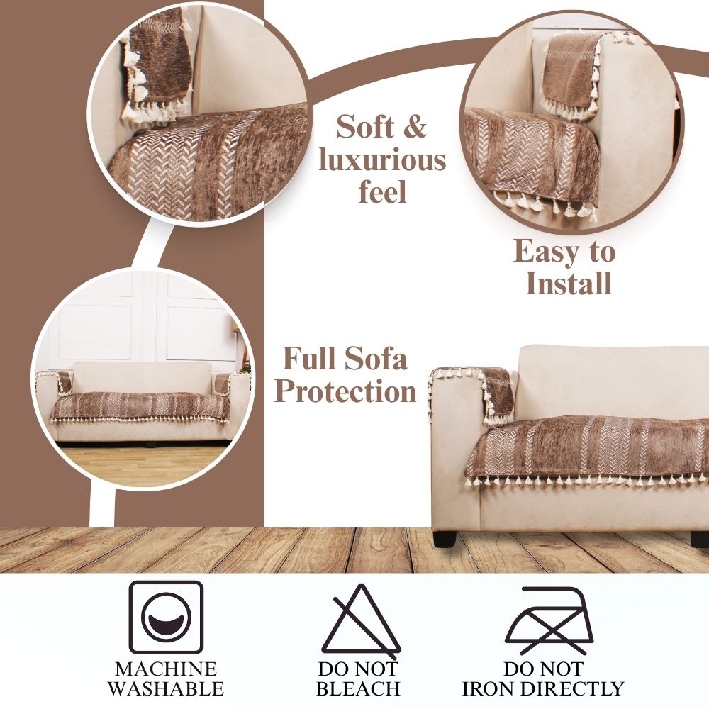 Printed Chenille Sofa Cover for 1 Seater, 2 Seater & 3 Seater with Hand Rest