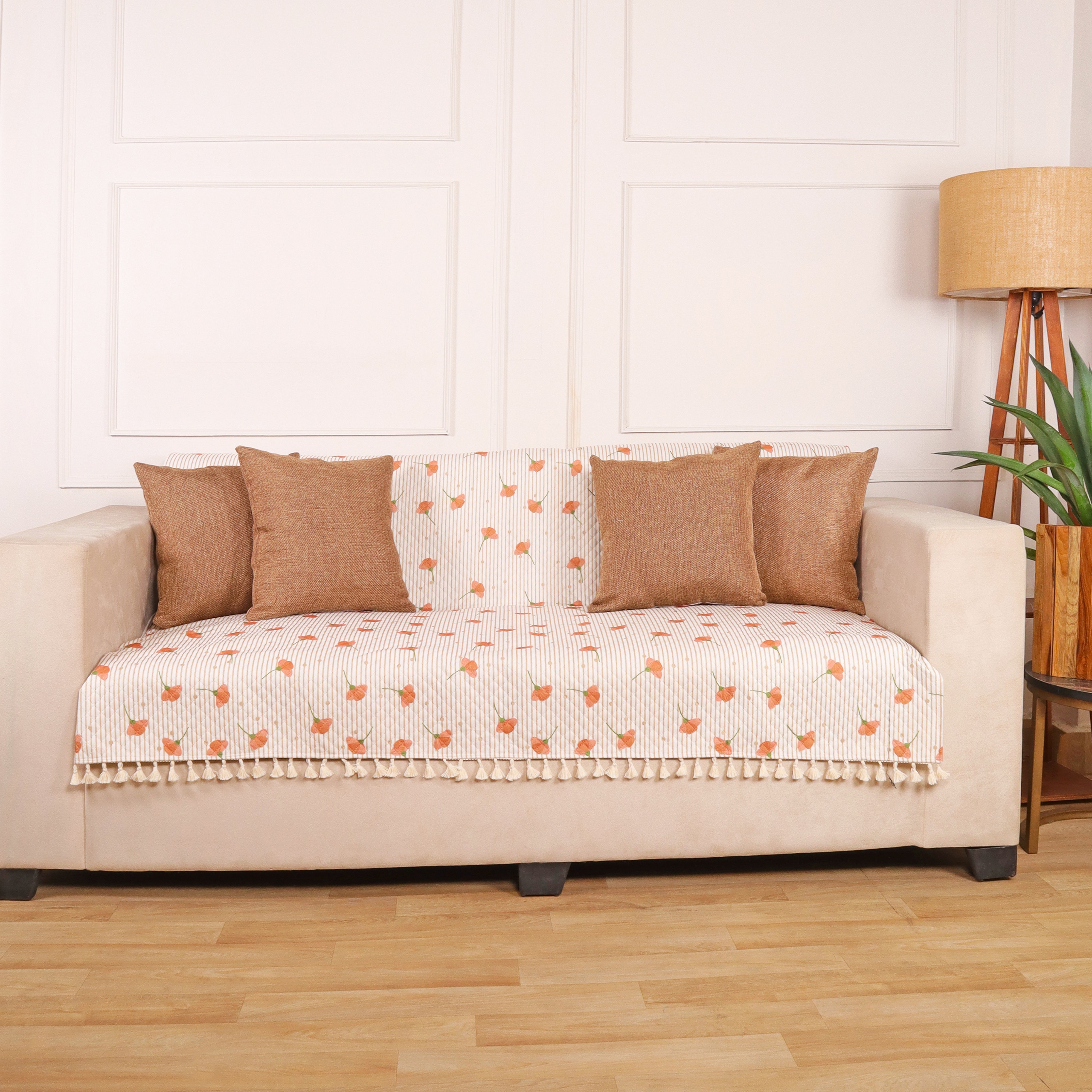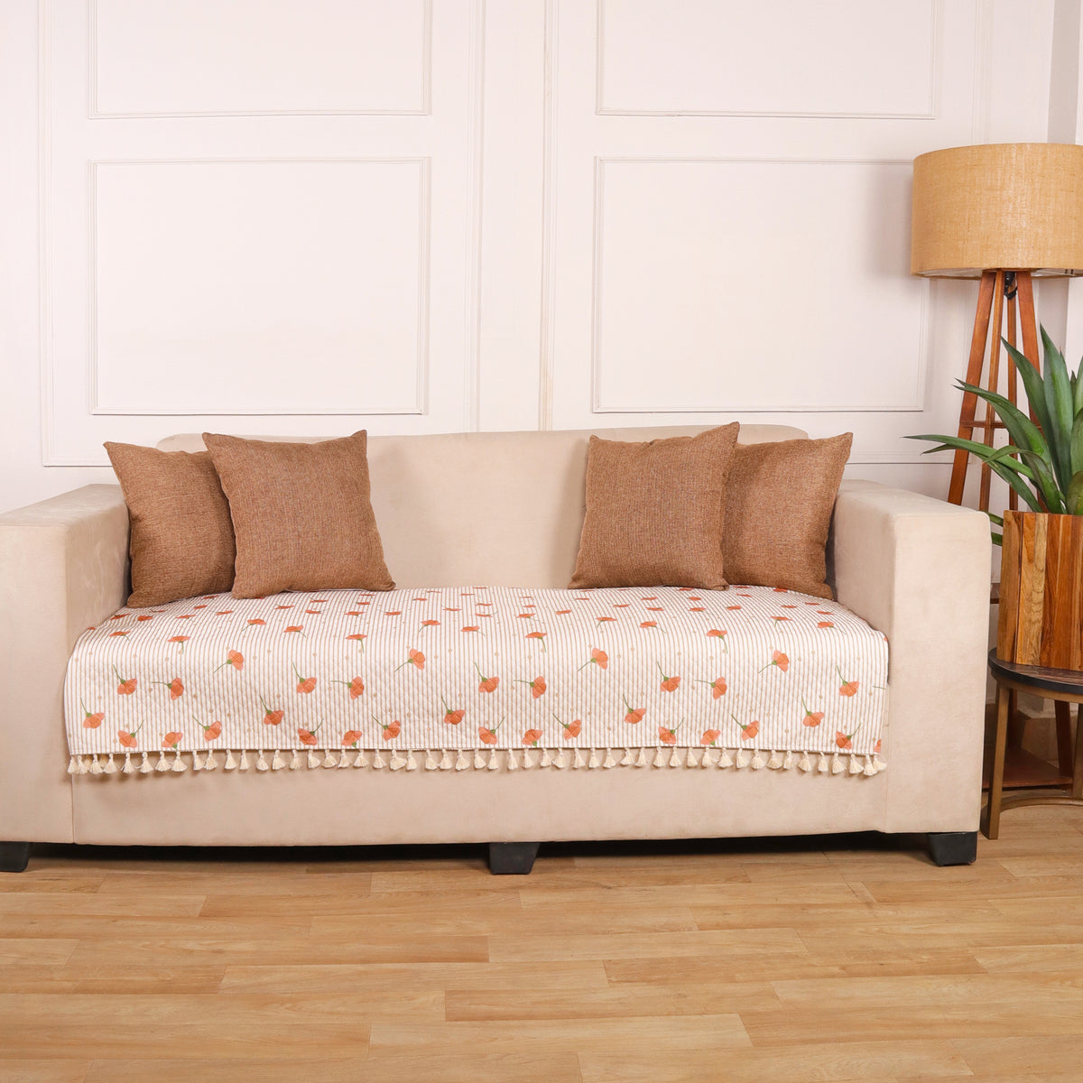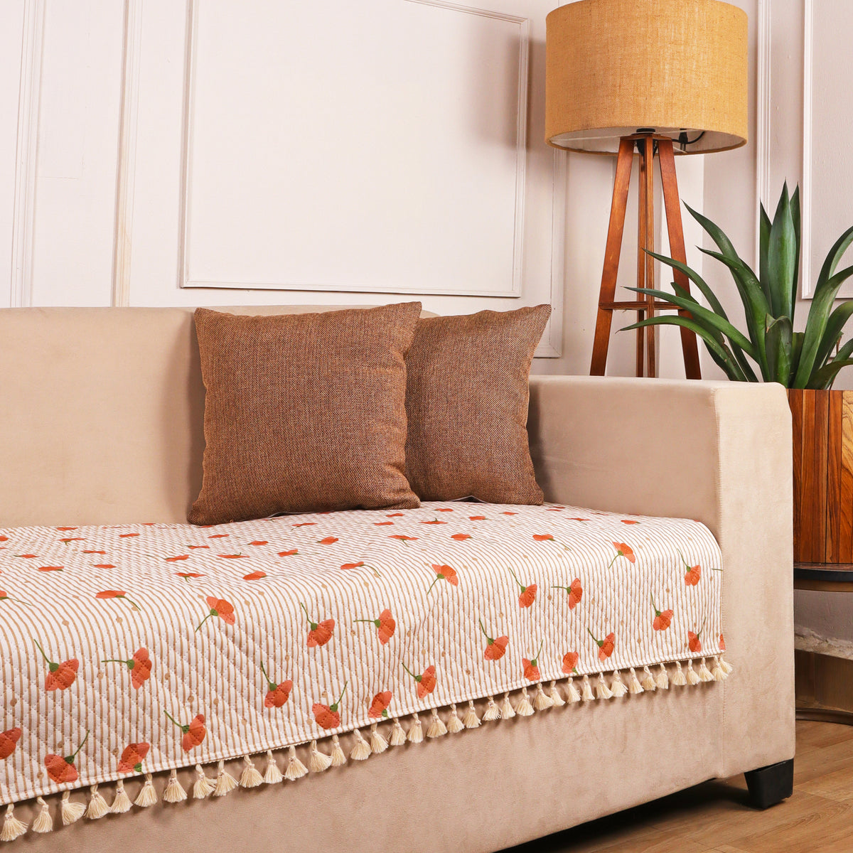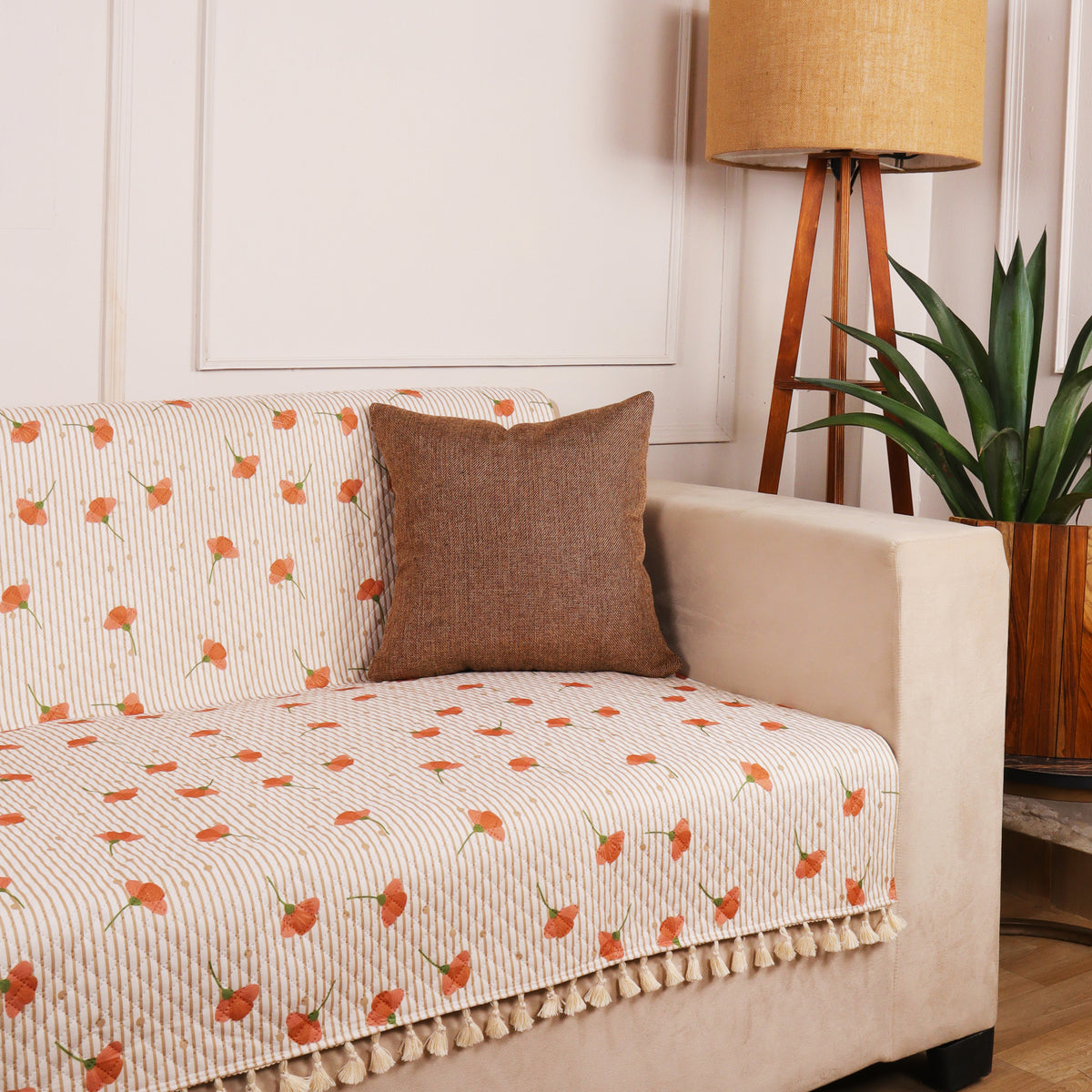 Quilted Velvet Printed Retro Floral Sofa Cover Set – 1, 2 & 3 Seater