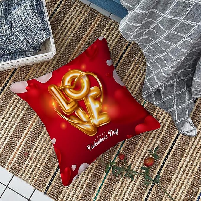 Luxury Love Hearts Cushion Cover (16x16 Inches)
