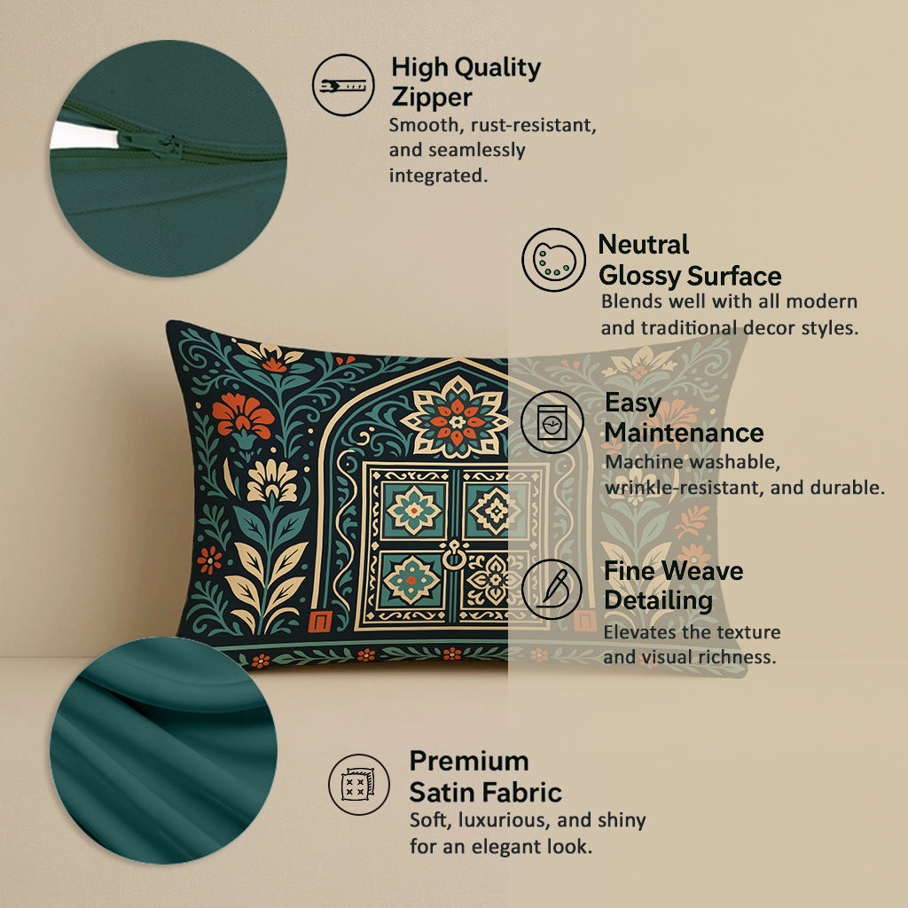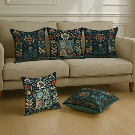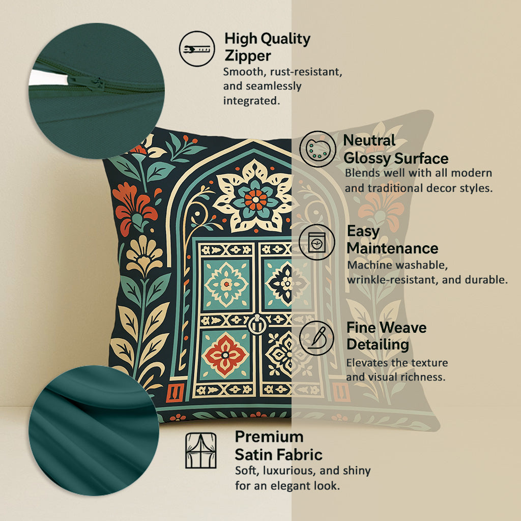 Satin Ethnic Royalarch Cushion Covers, Living Room & Festive Decor - Set of 2 and 5