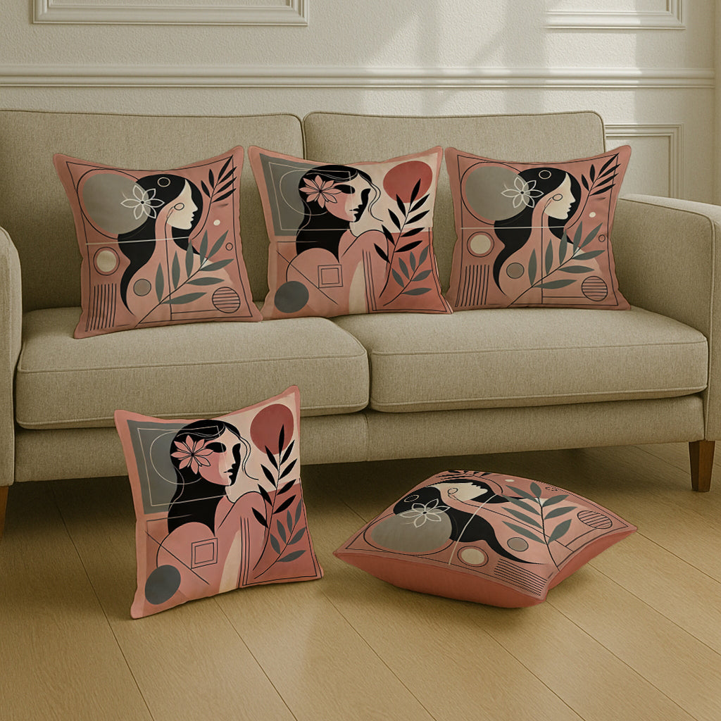 Satin Ethnic Leaflight Cushion Covers, Living Room & Festive Decor - Set of 2 and 5