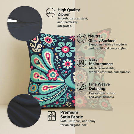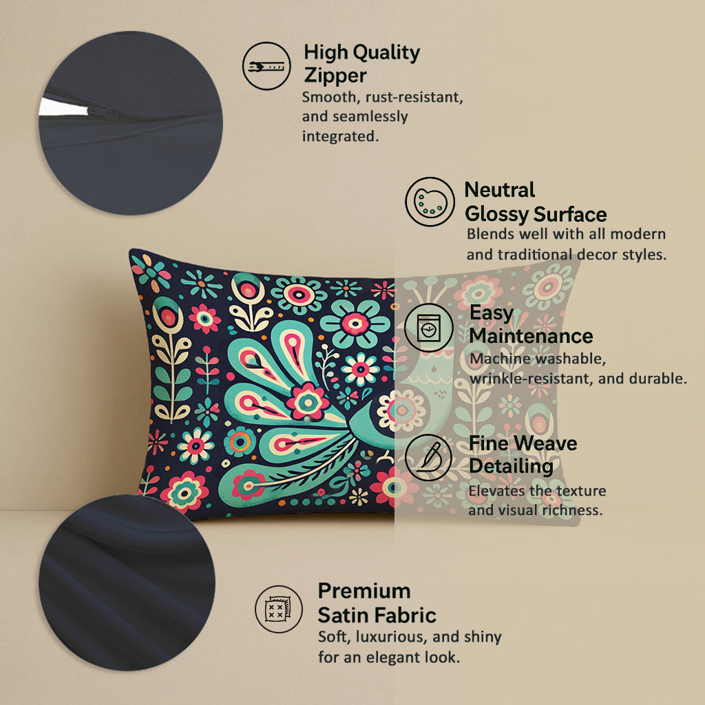 Satin Ethnic Mayur Cushion Covers, Living Room & Festive Decor - Set of 2 and 5
