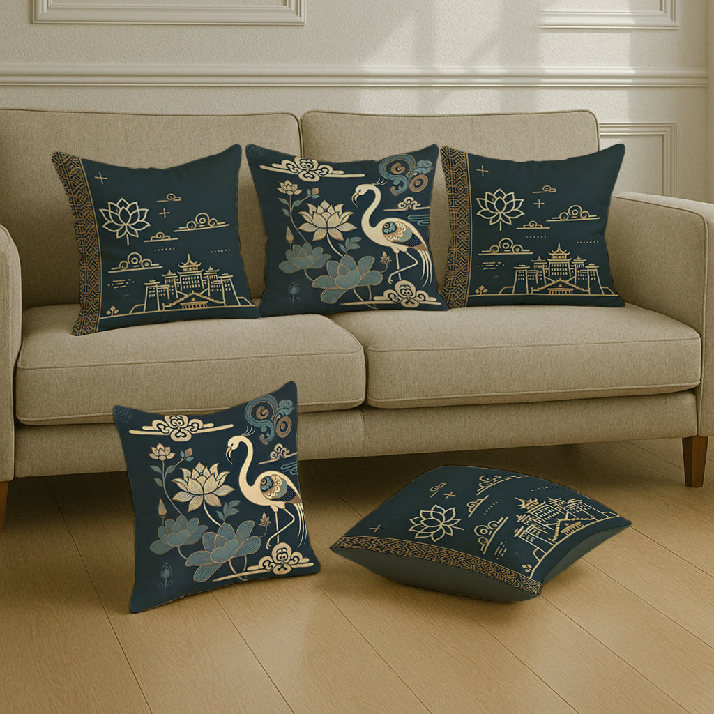 Satin Ethnic Moon Cushion Covers, Living Room & Festive Decor - Set of 2 and 5