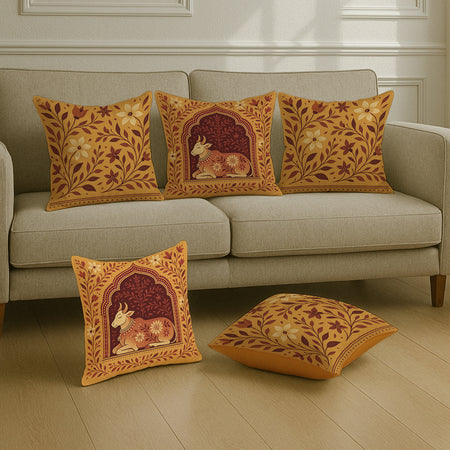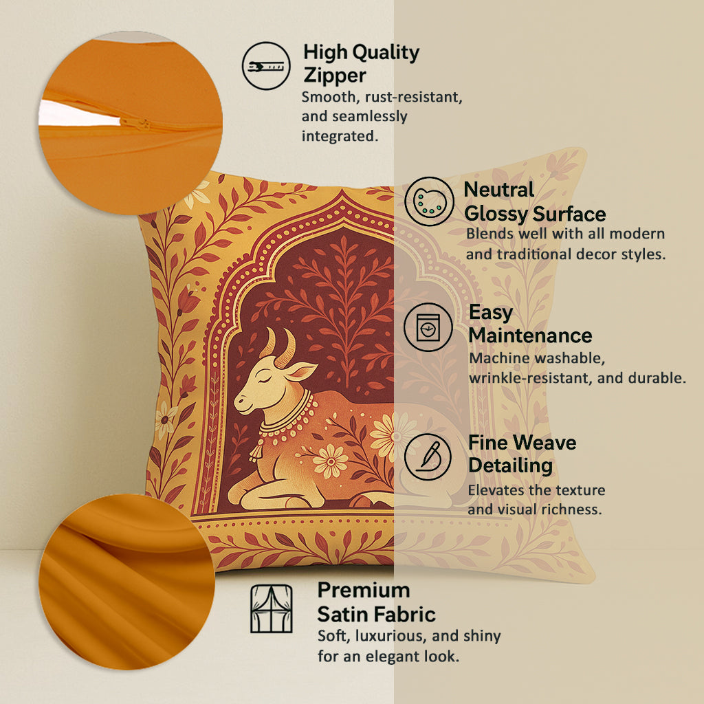 Satin Ethnic Nandi Cushion Covers, Living Room & Festive Decor - Set of 2 and 5