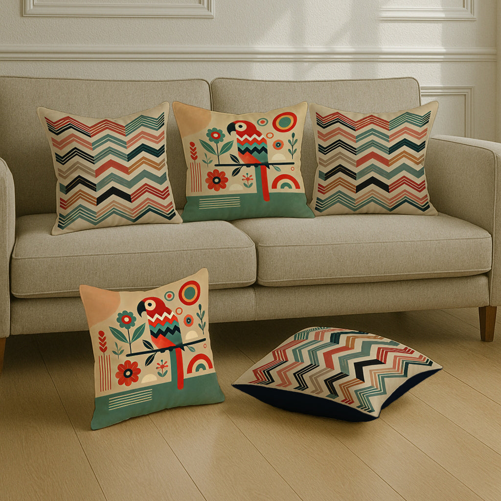Satin Ethnic Rangila Cushion Covers, Living Room & Festive Decor - Set of 2 and 5