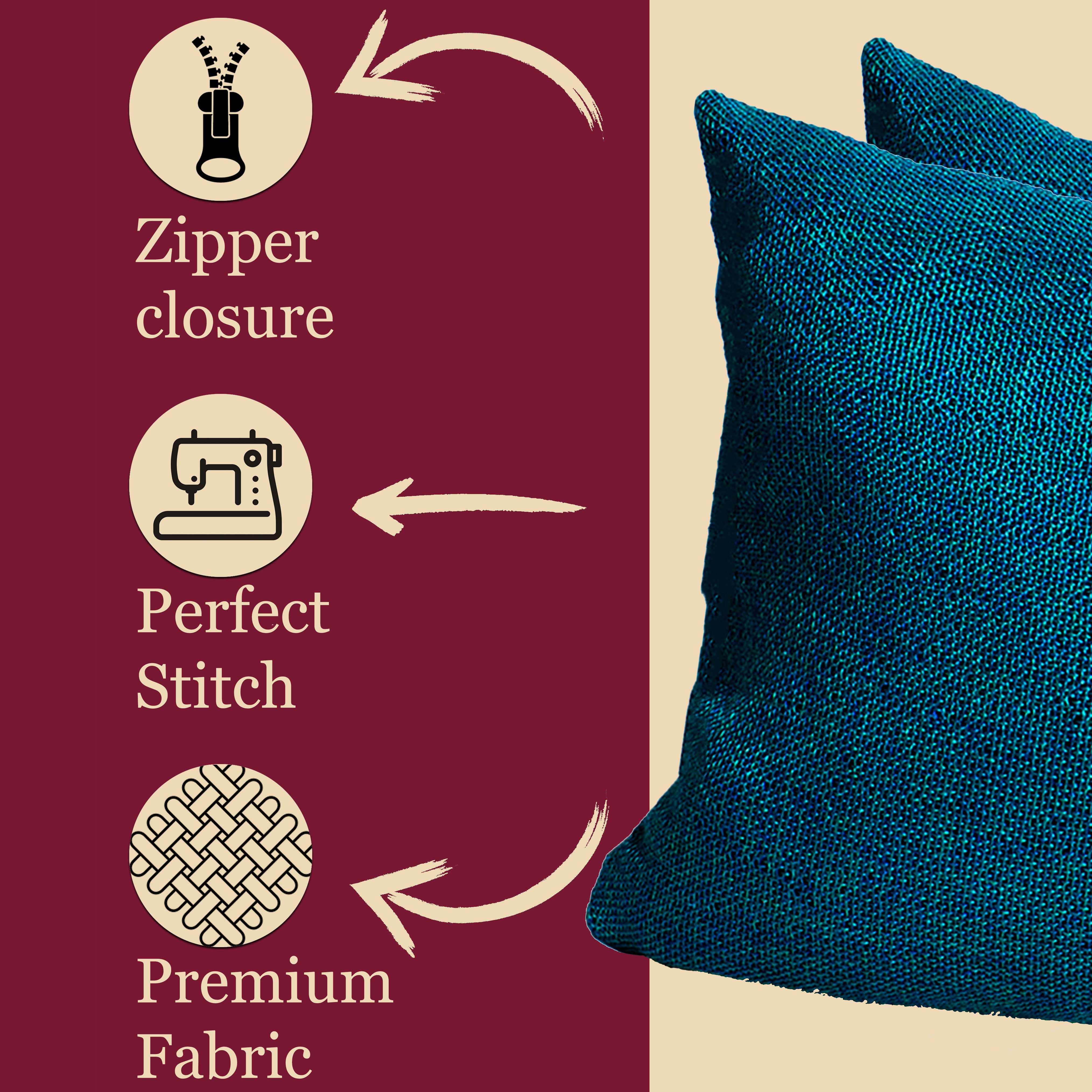 Solid Jute Cushion Covers for Sofa, Couch, Bed, Living Room - Set of 2 & 5