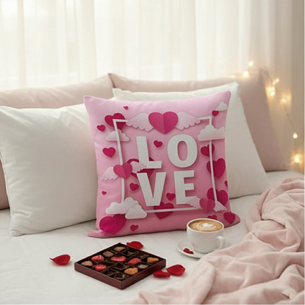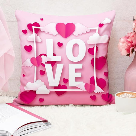 Valentine Love Frame Cushion Cover (16x16 Inches)