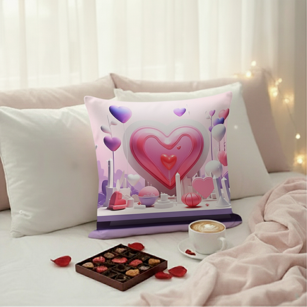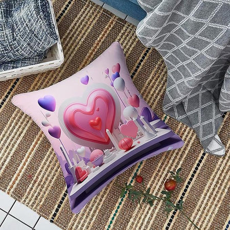 Valentine Pink Love Wonderland Cushion Cover (16x16 Inches)