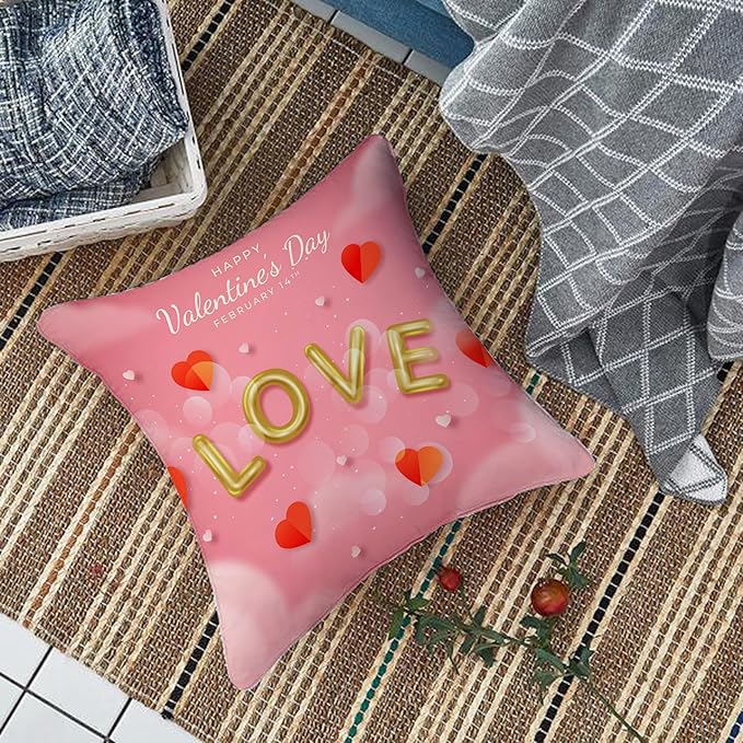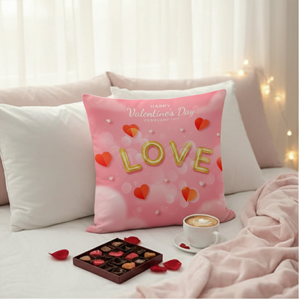 Valentine Love Hearts Cushion Cover (16x16 Inches)