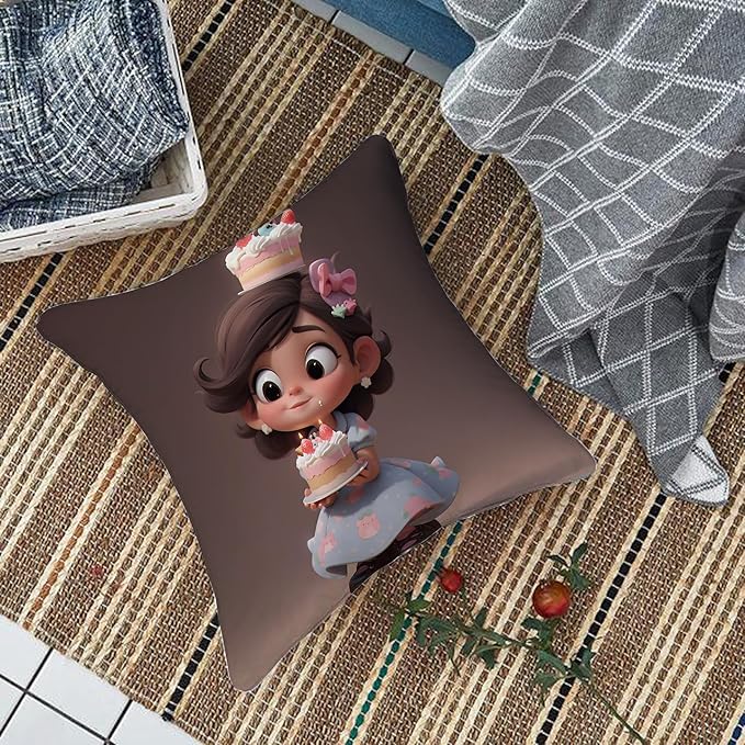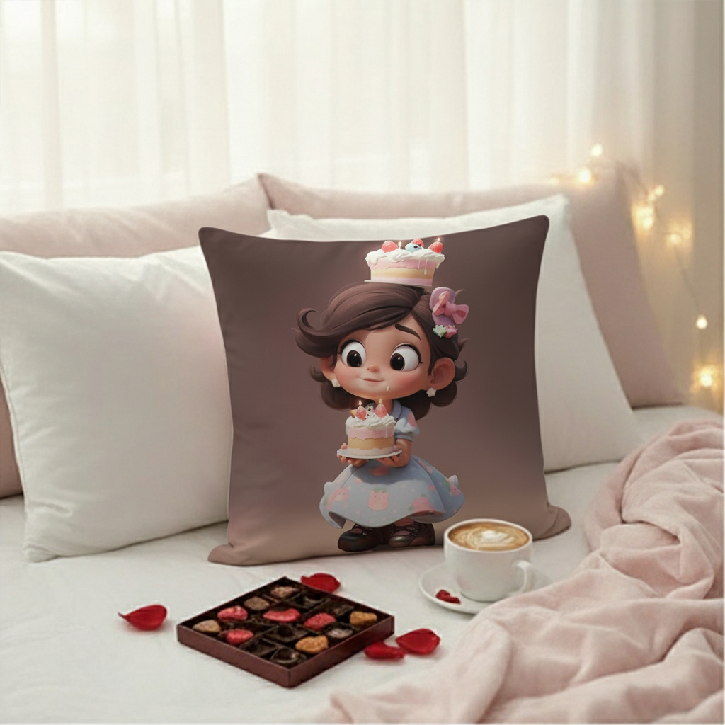 Valentine Little Cake Princess Cushion Cover (16x16 Inches)