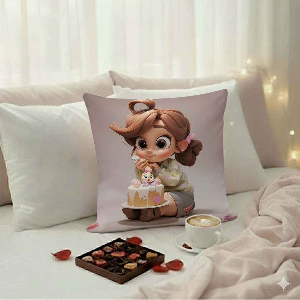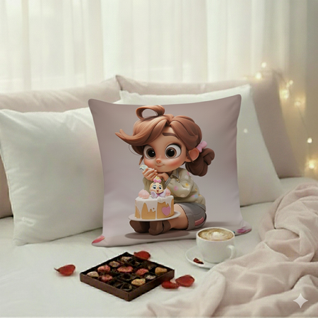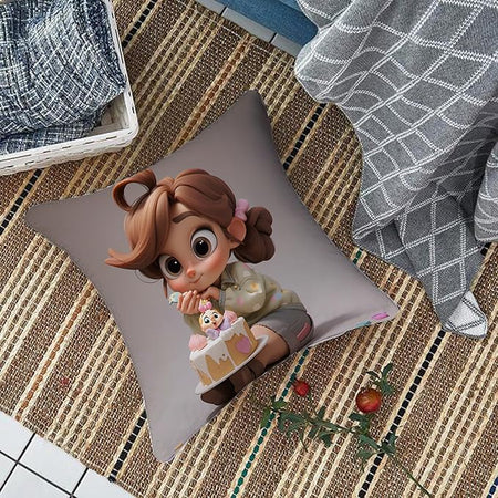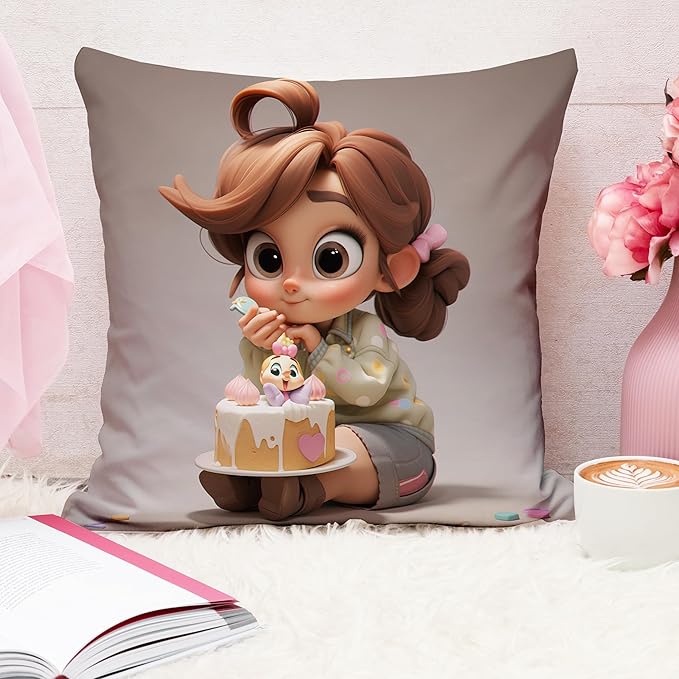 Cute Birthday Girl Cushion Cover (16x16 Inches)