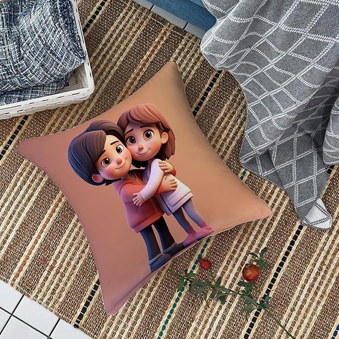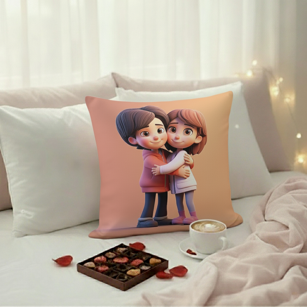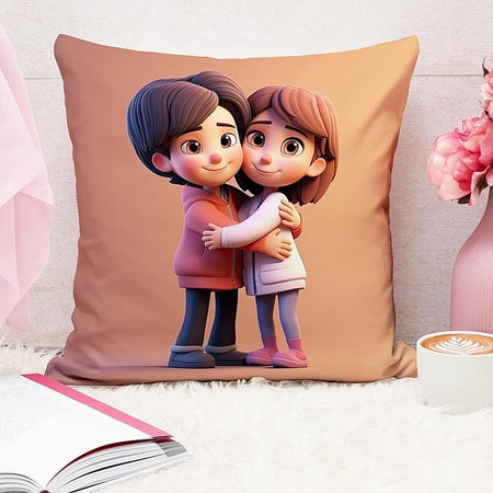 Valentine Romantic Couple Hug Cushion Cover (16x16 Inches)