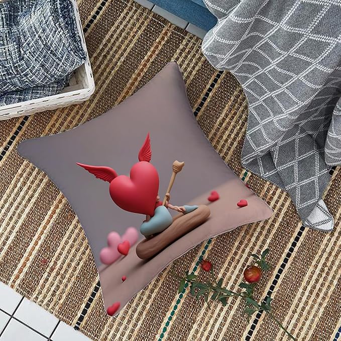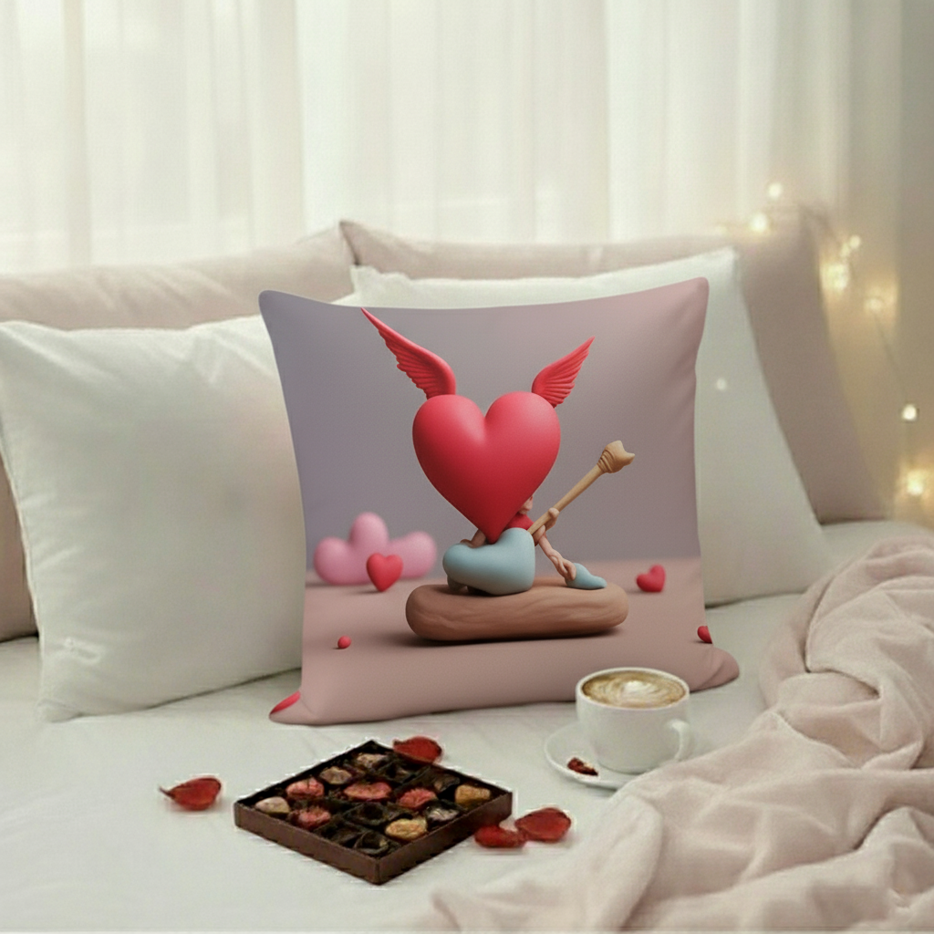 Valentine Romantic Heart Cupid Cushion Cover (16x16 Inches)