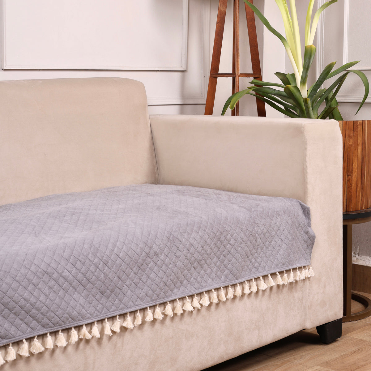 Quilted Velvet Elegance Combo – Sofa Cover & Cushion Cover Set