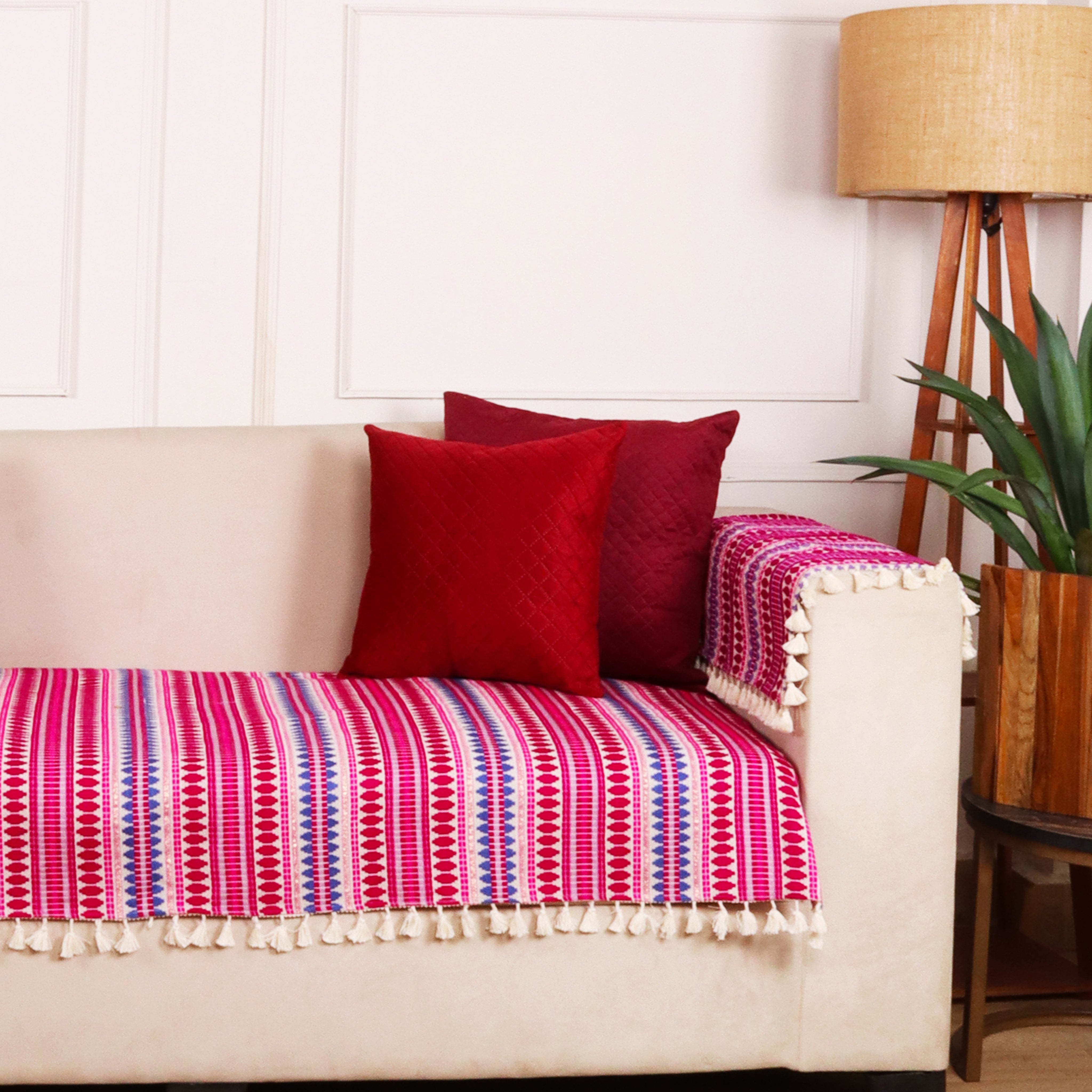 Woven Charm Maroon Sofa Cover & Table Runner Set