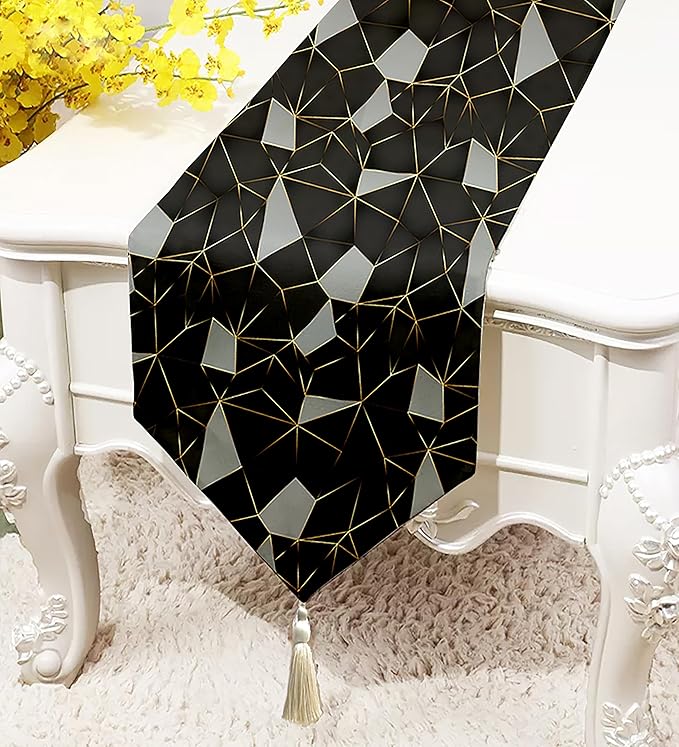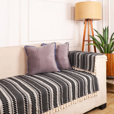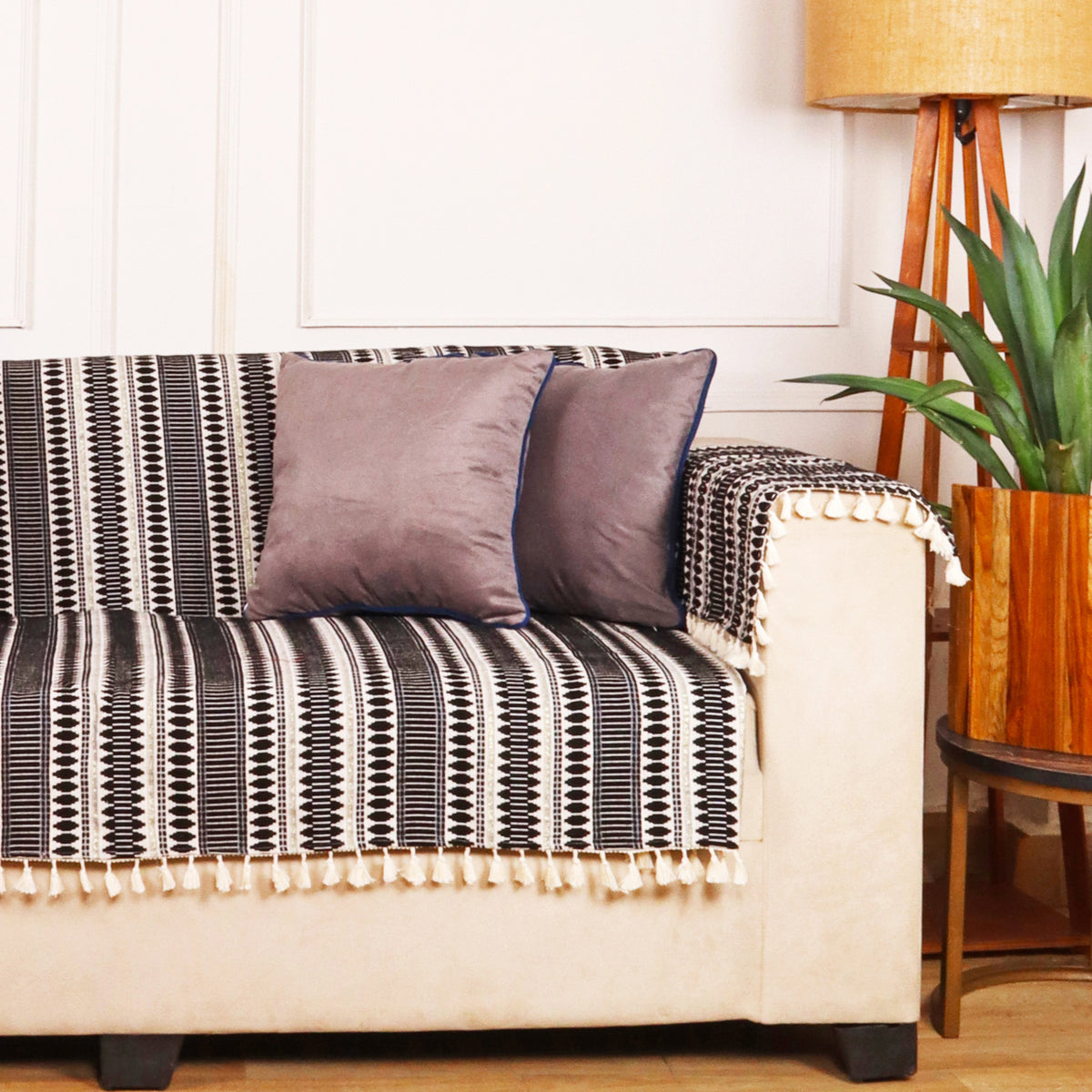 Woven Charm Black Sofa Cover & Polycotton Table Runner Set